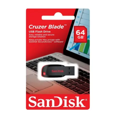זיכרון נייד למחשב בחיבור USB 2.0 בנפח SanDisk Cruzer Blade 64GB