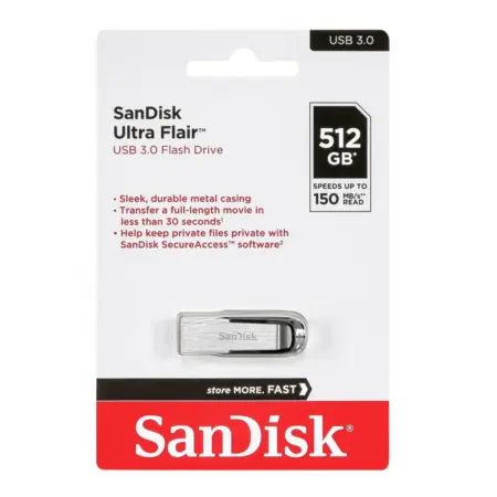 זיכרון נייד למחשב בחיבור USB 3.0 בנפח SanDisk Ultra Flair 512GB